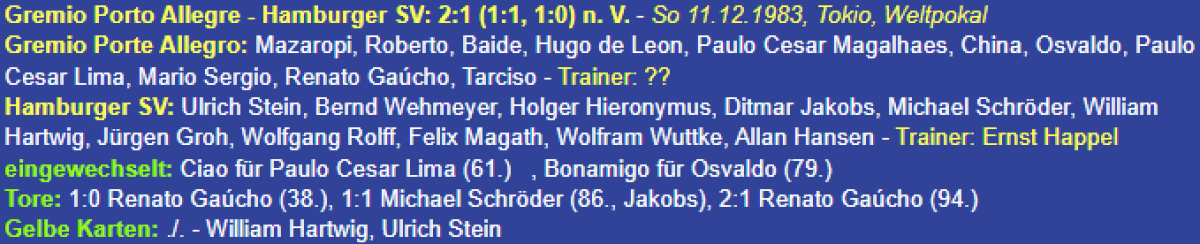 «Гремио» Порту-Алегри - «Гамбургер» Гамбург - 2:1