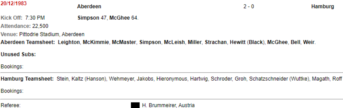 «Абердин» Абердин - «Гамбургер» Гамбург - 2:0