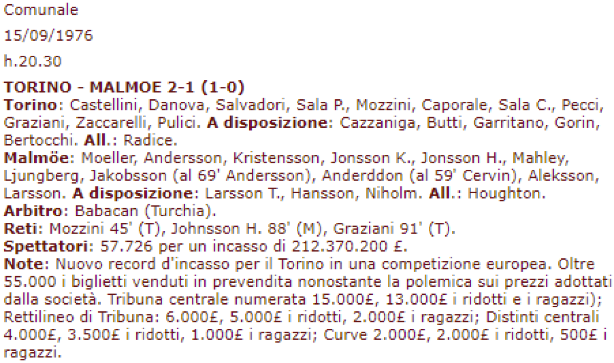 «Торино Кальчо» Турин - «Мальмё» Мальмё - 2:1