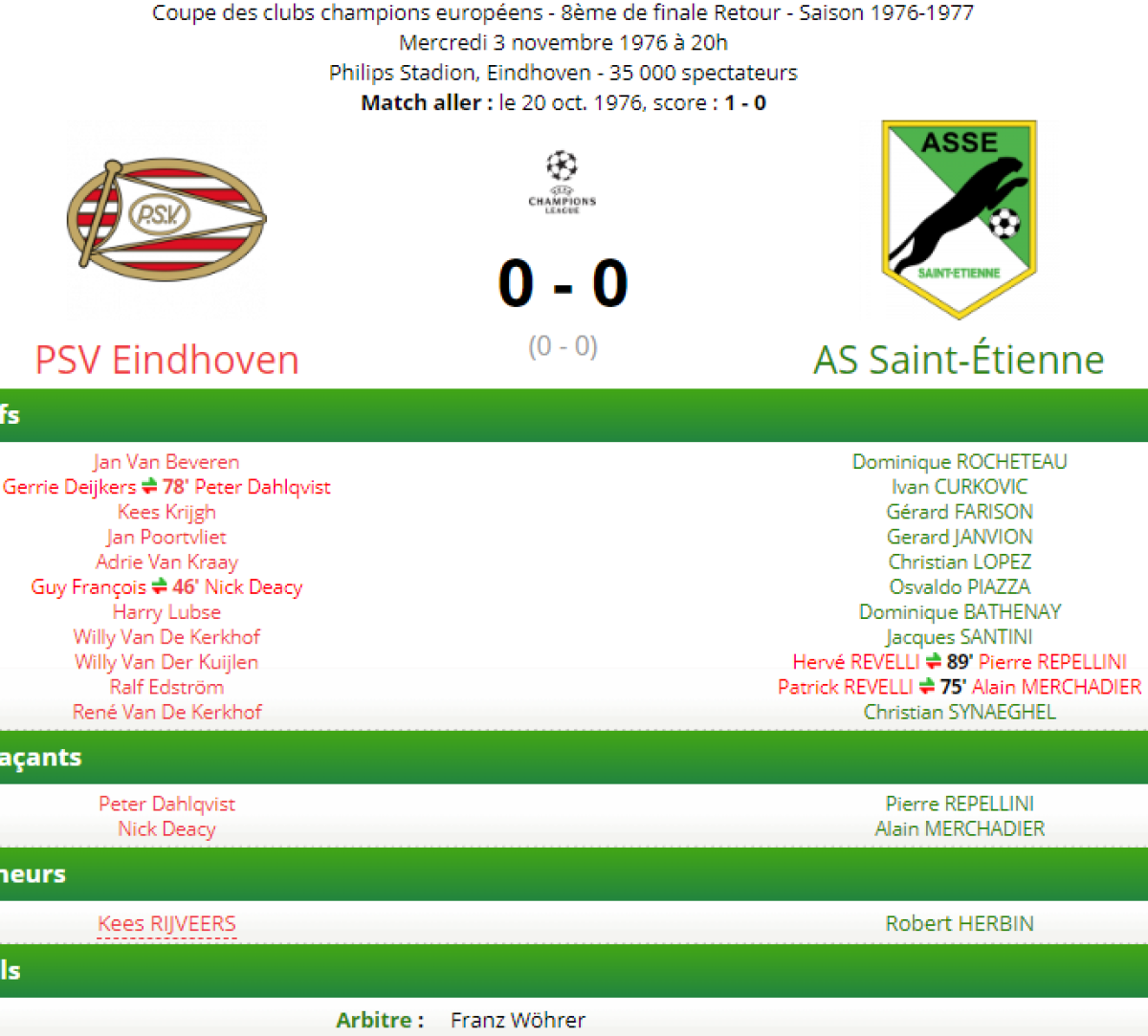 ПСВ Эйндховен - «Сент-Этьен» Сент-Этьен - 0:0
