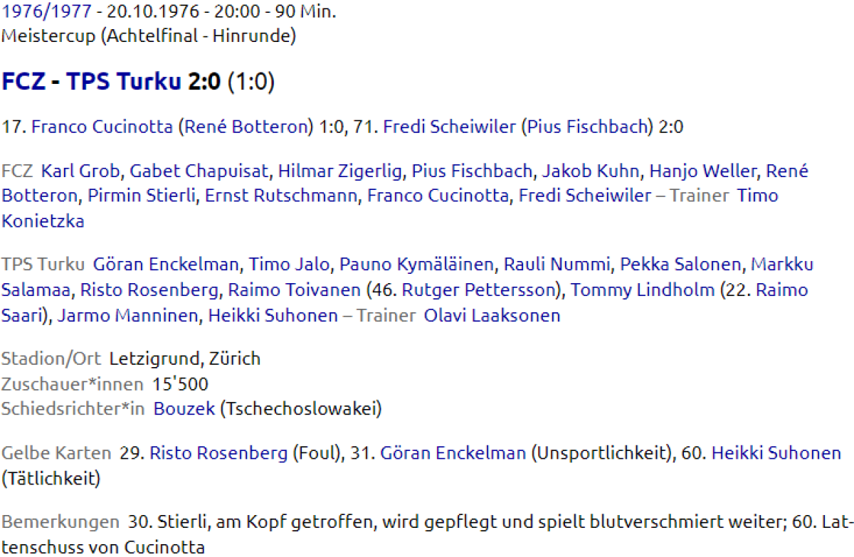 «Цюрих» Цюрих - ТПС Турку - 2:0