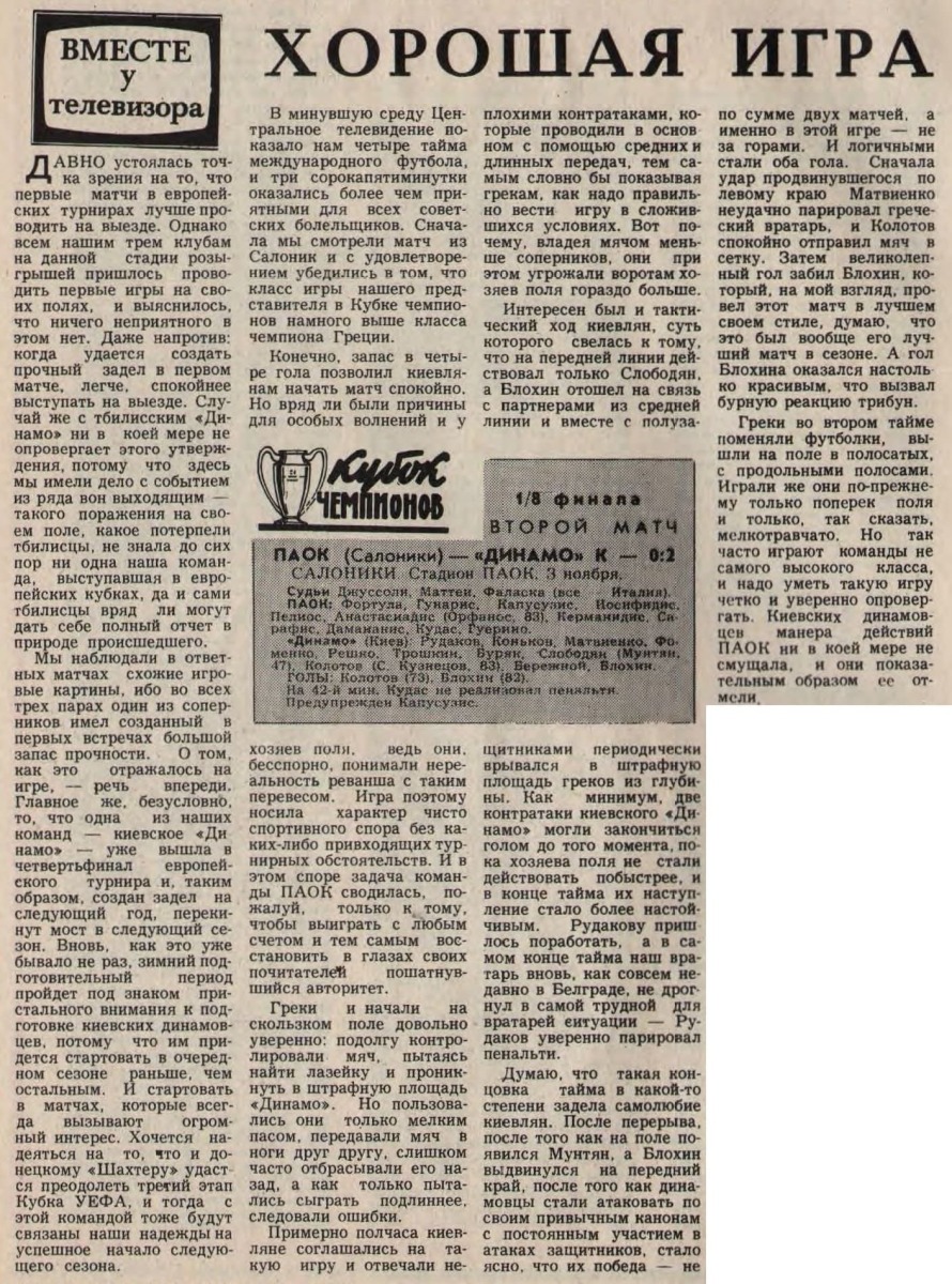 ПАОК Салоники - «Динамо» Киев - 0:2