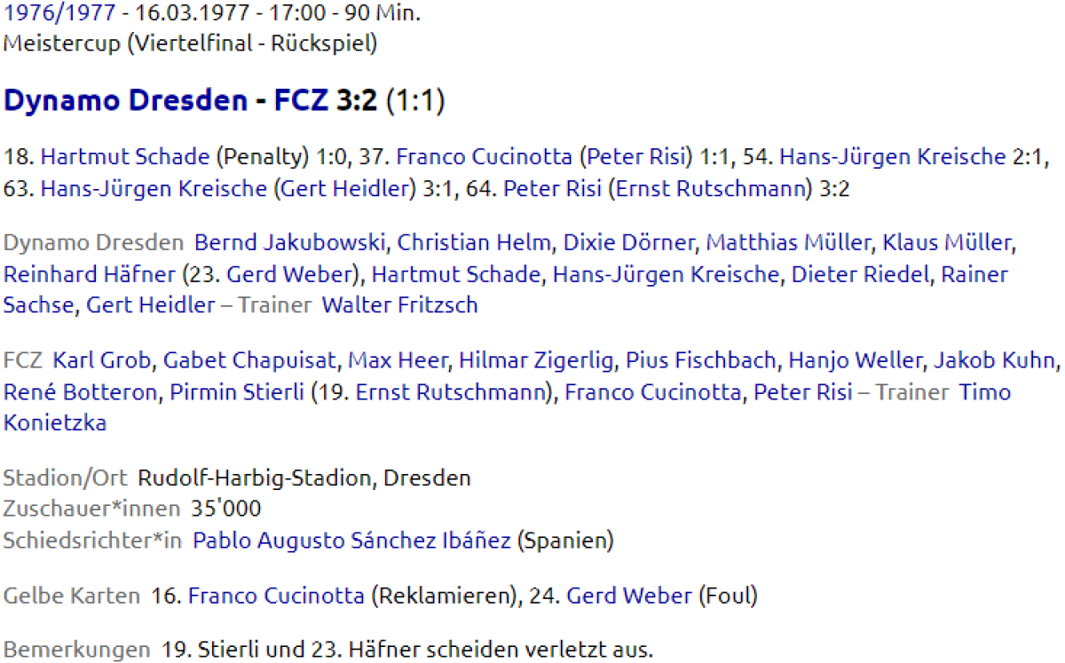 «Динамо» Дрезден - «Цюрих» Цюрих - 3:2