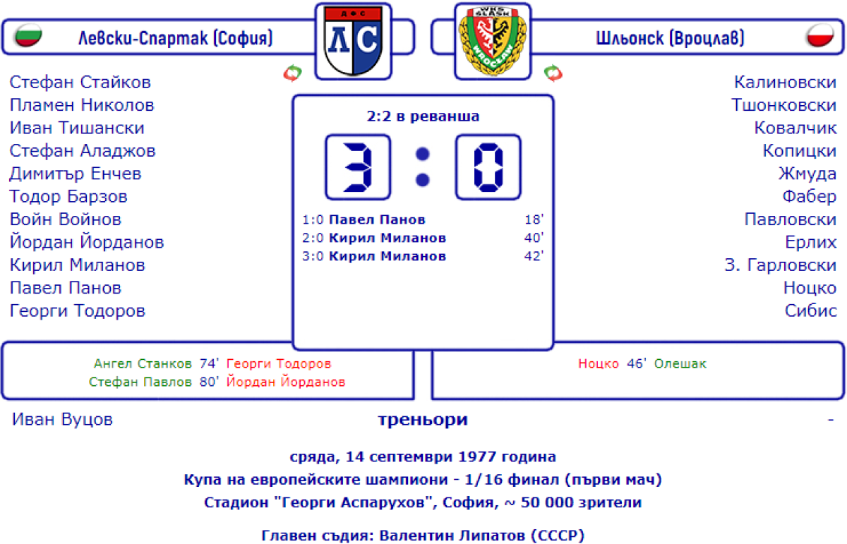 «Левски-Спартак» София - «Шлёнск» Вроцлав - 3:0