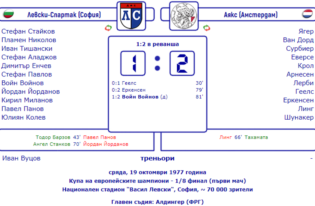 «Левски-Спартак» София - «Аякс» Амстердам - 1:2