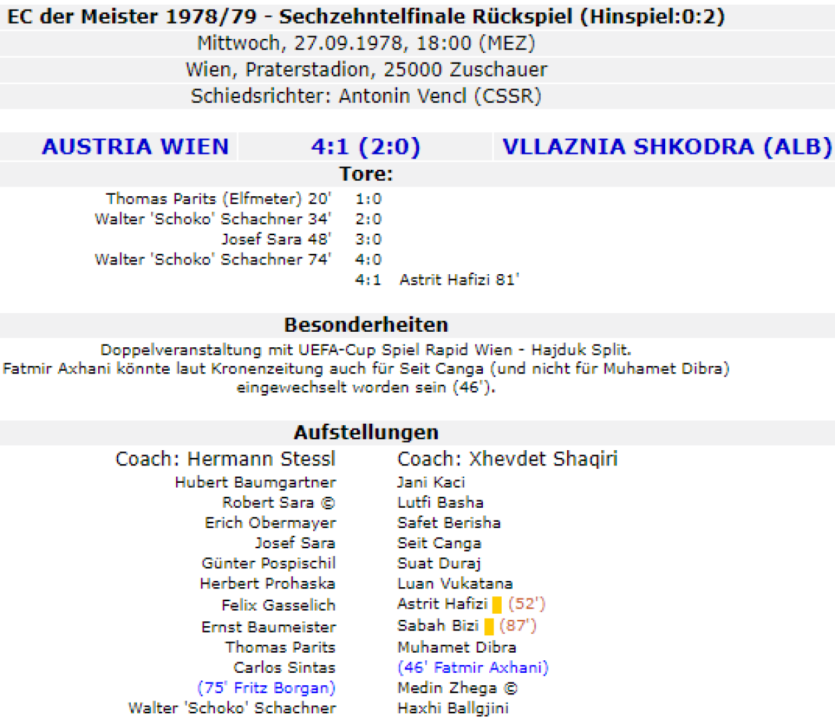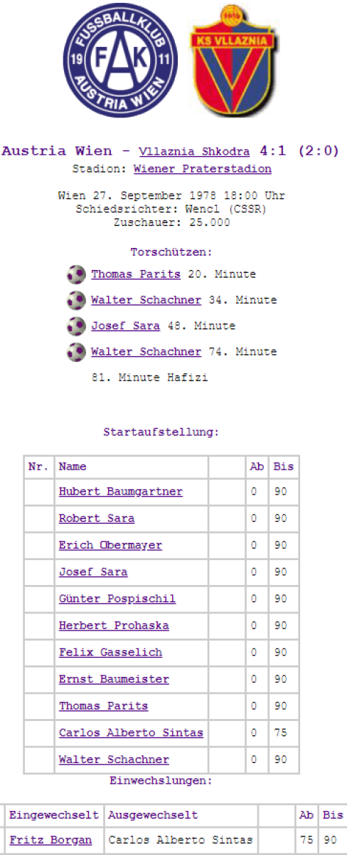 «Аустрия» Вена - «Влазния» Шкодер - 4:1