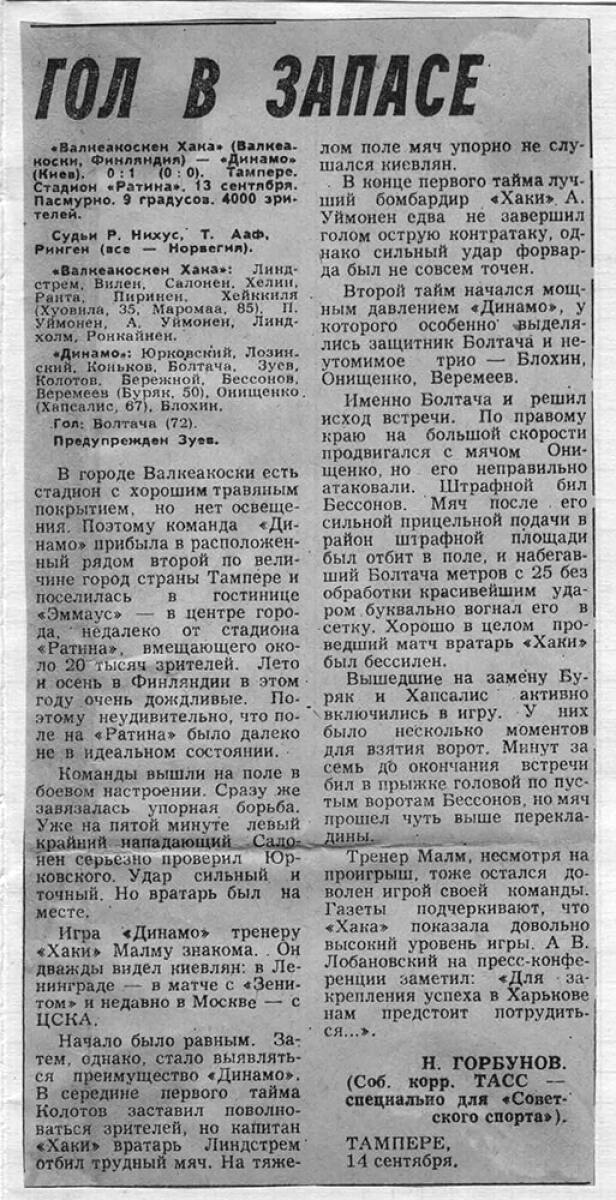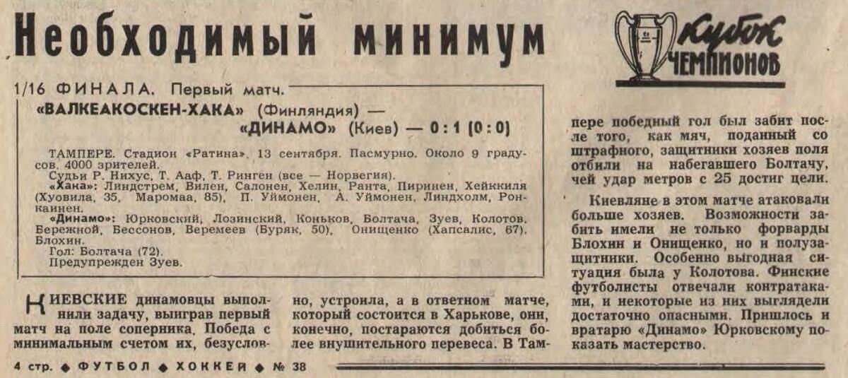 «Хака» Валкеакоски - «Динамо» Киев - 0:1