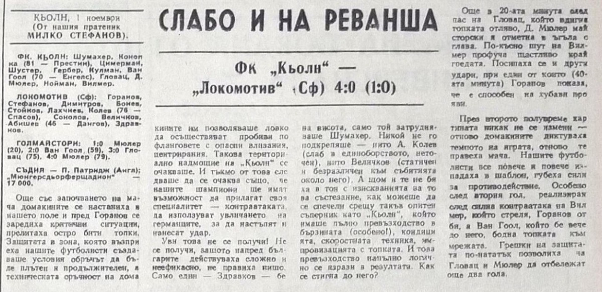 «1. ФК Кёльн» Кёльн - «Локомотив» София - 4:0