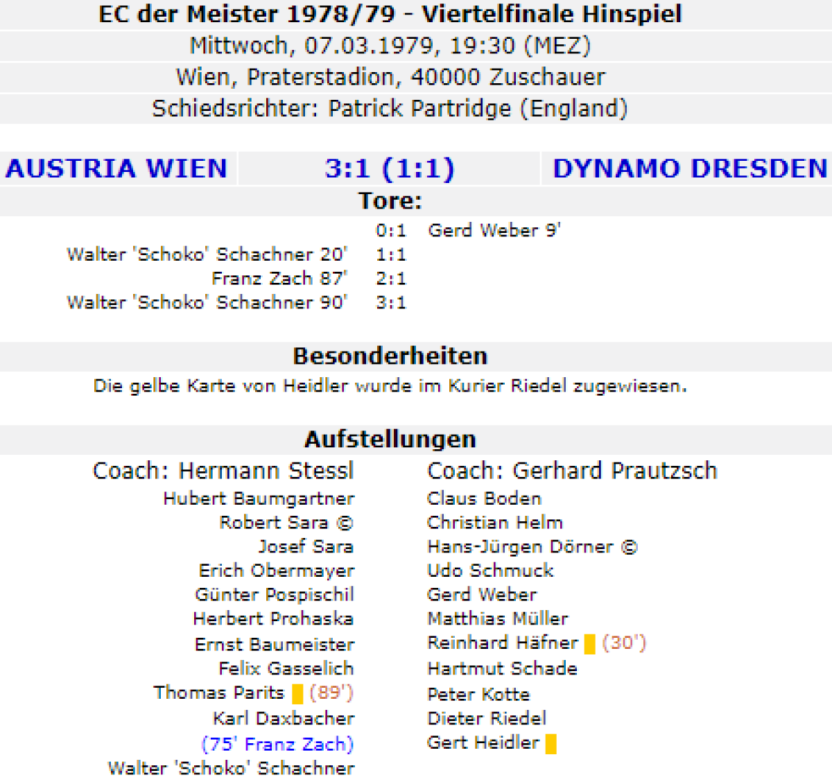 «Аустрия» Вена - «Динамо» Дрезден - 3:1