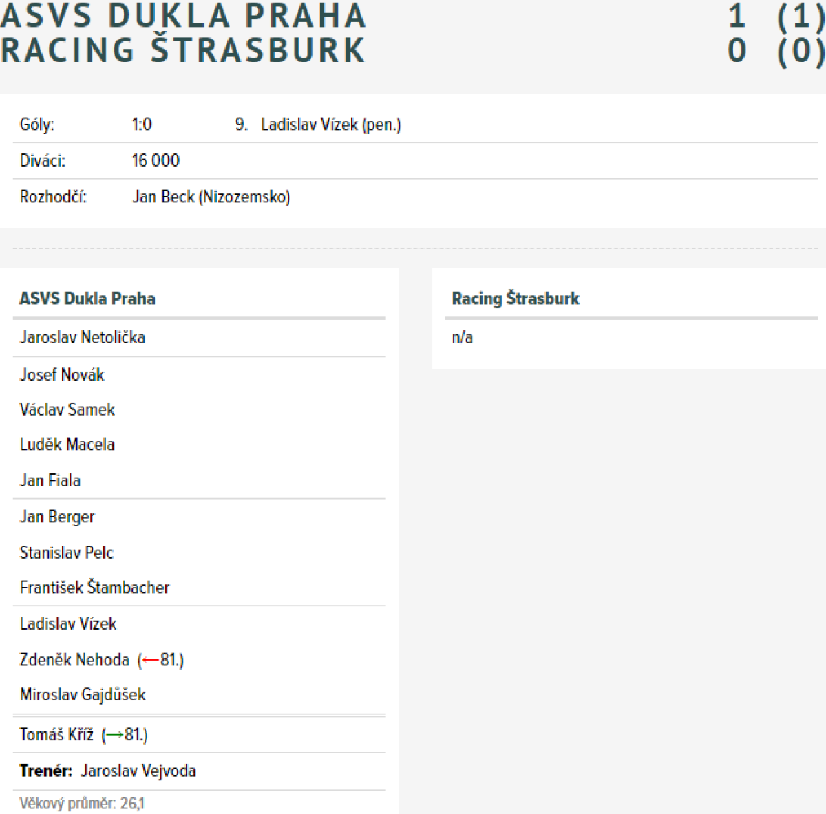 «Дукла» Прага - «Расинг Страсбург» Страсбург - 1:0