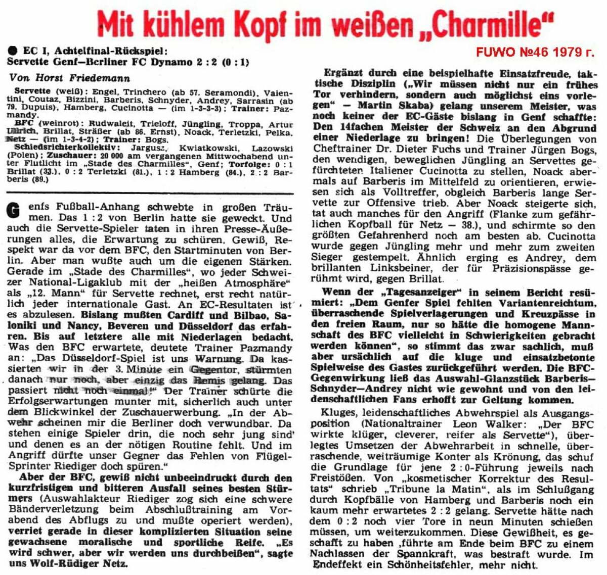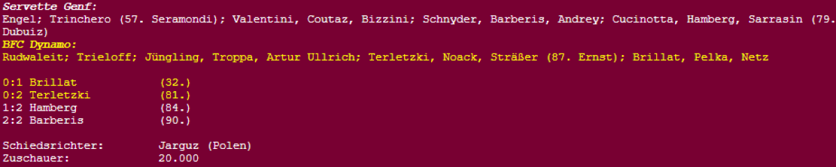 «Серветт» Женева - «Динамо» Берлин - 2:2