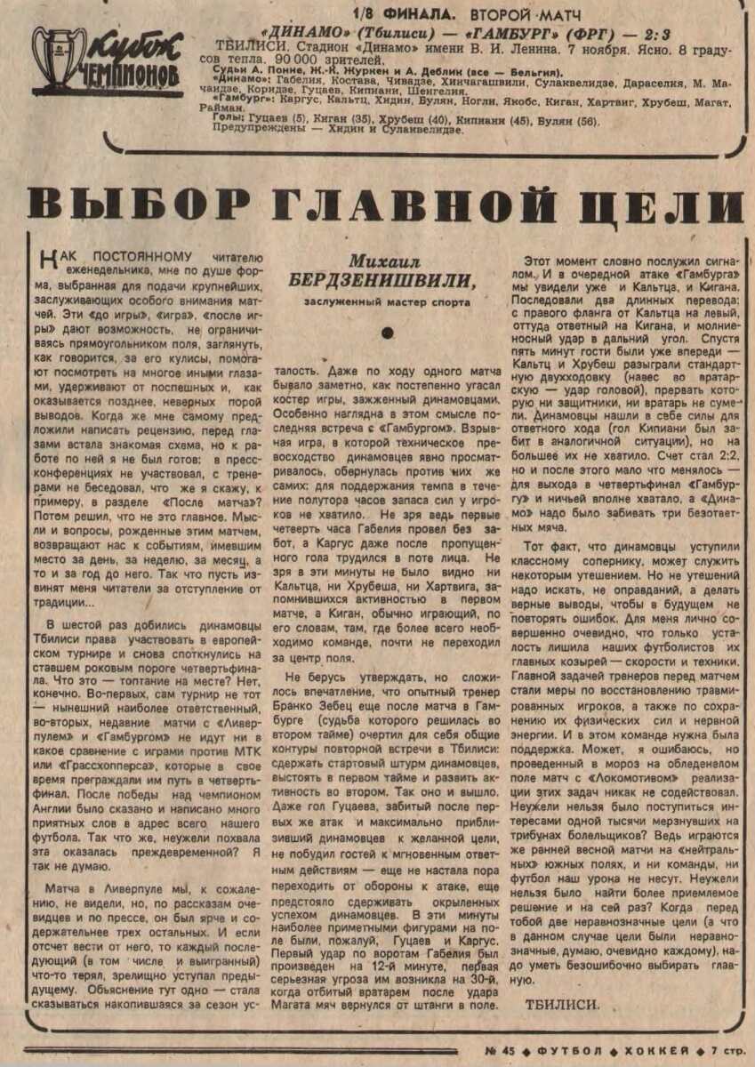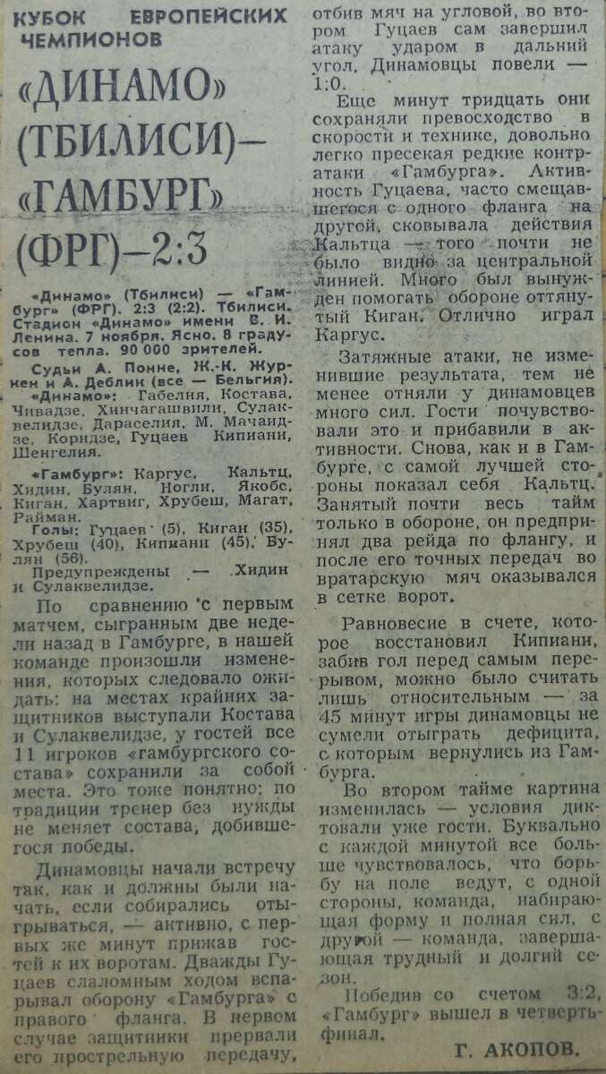 «Динамо» Тбилиси - «Гамбургер» Гамбург - 2:3