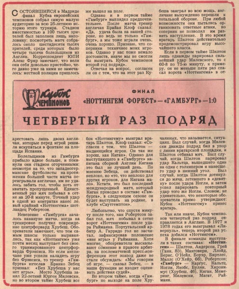 «Ноттингем Форест» Ноттингем - «Гамбургер» Гамбург - 1:0