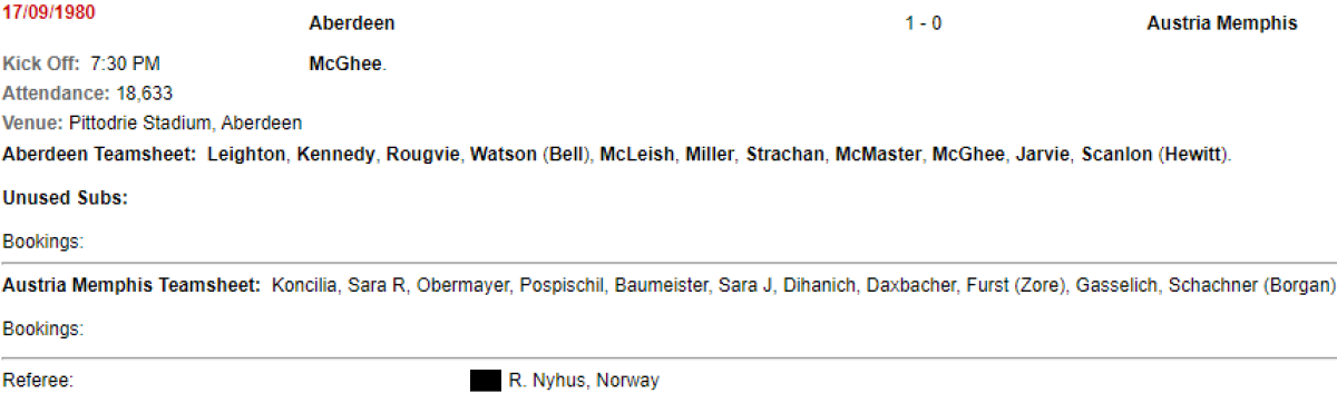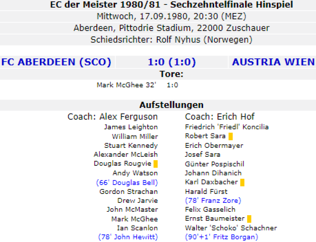 «Абердин» Абердин - «Аустрия» Вена - 1:0