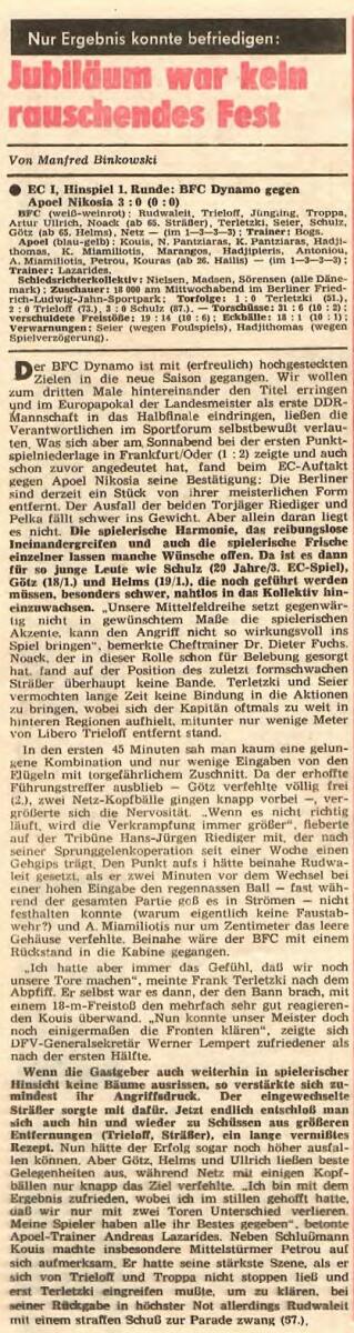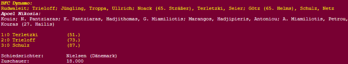 «Динамо» Берлин - АПОЭЛ Никосия - 3:0