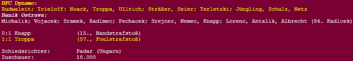 «Динамо» Берлин - «Баник» Острава - 1:1