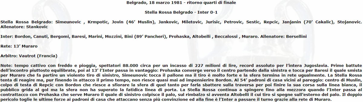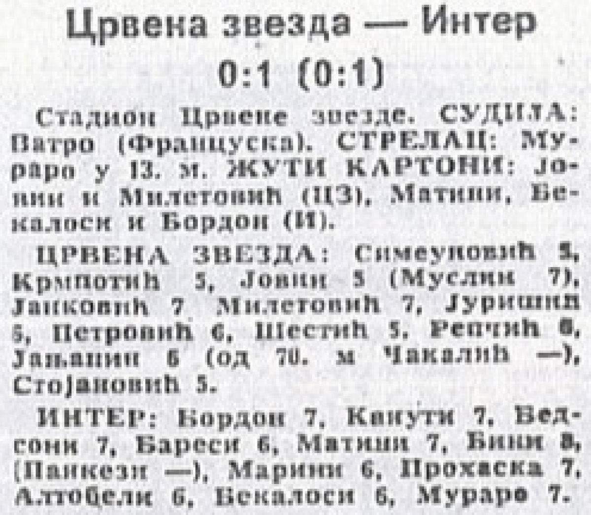 «Црвена Звезда» Белград - «Интернационале» Милан - 0:1