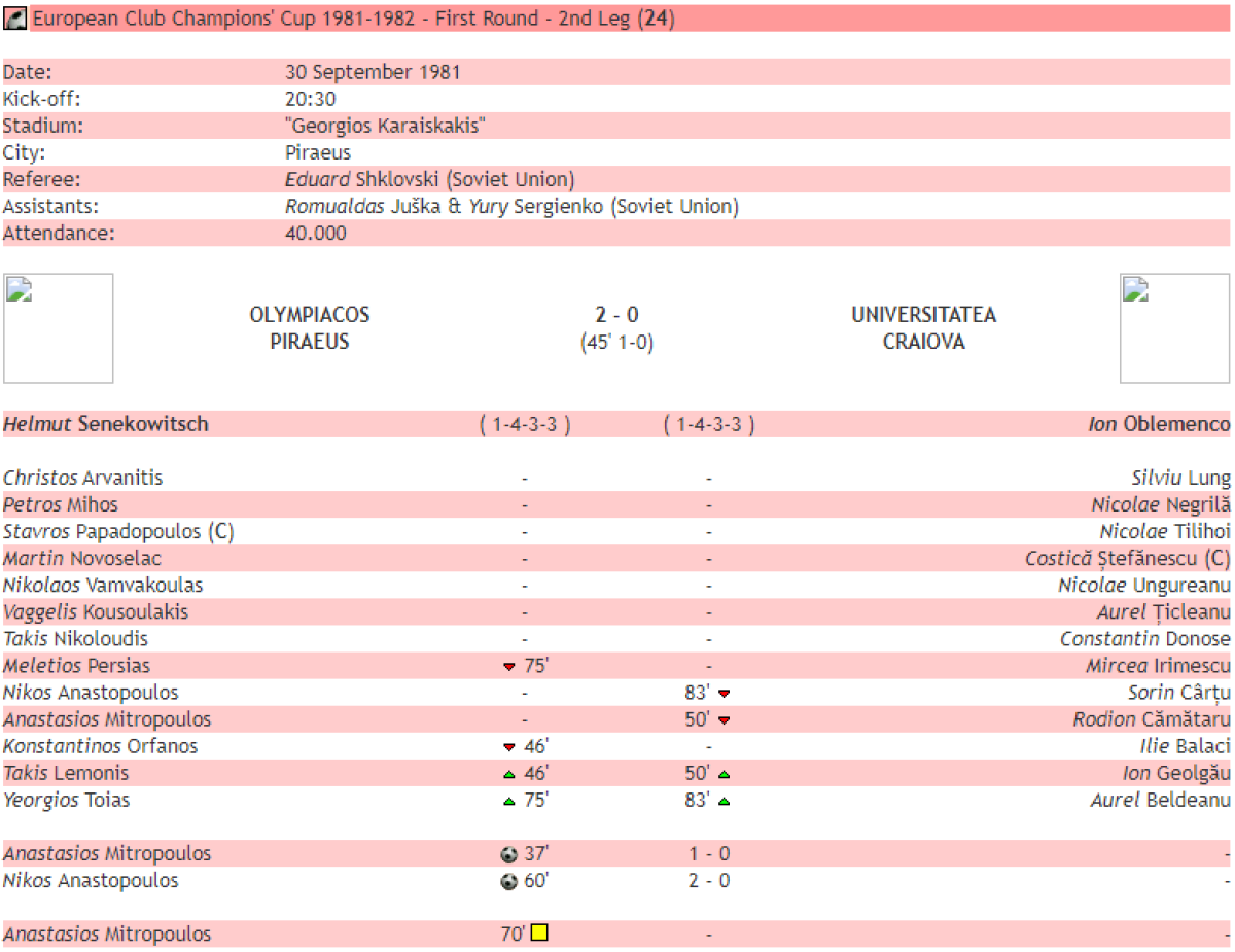 «Олимпиакос» Пирей - «Университатя» Крайова - 2:0
