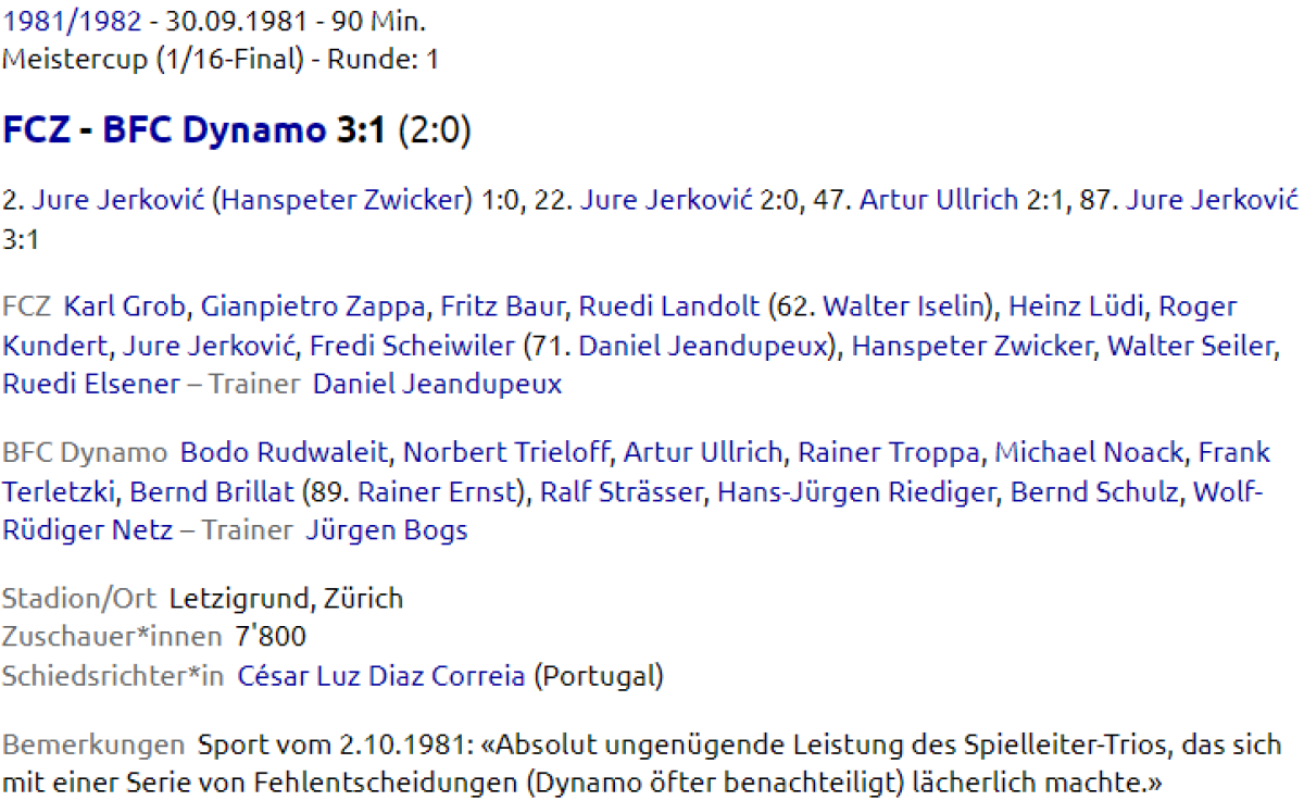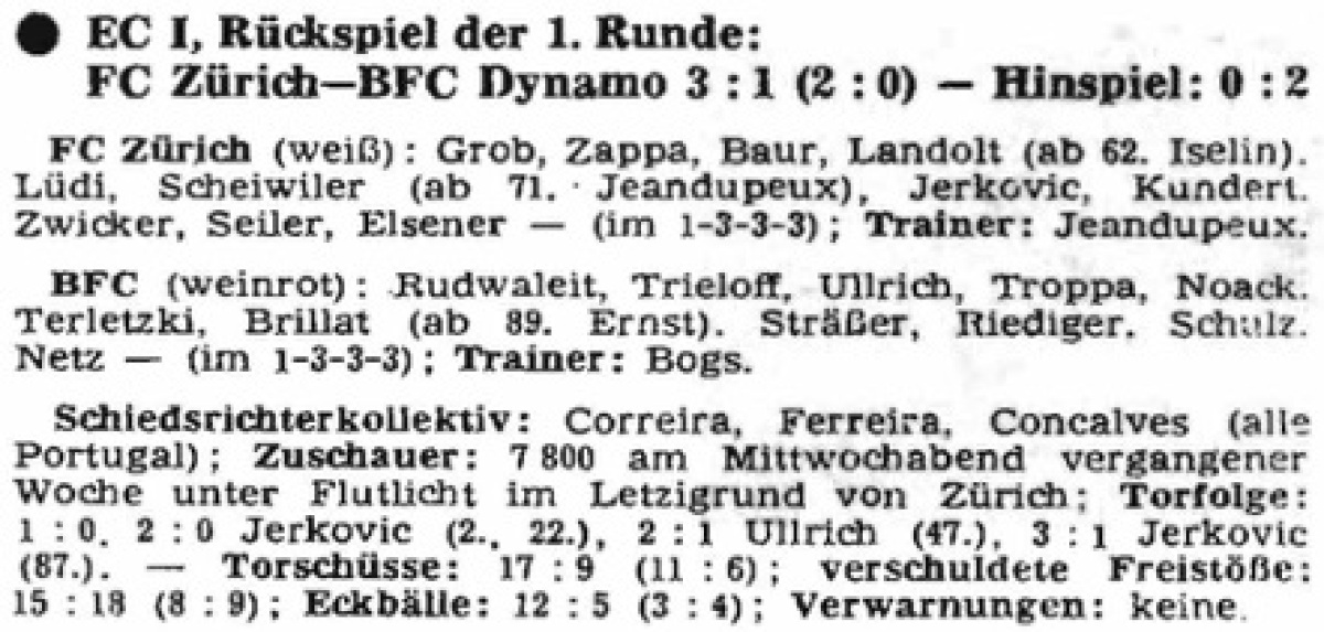 «Цюрих» Цюрих - «Динамо» Берлин - 3:1