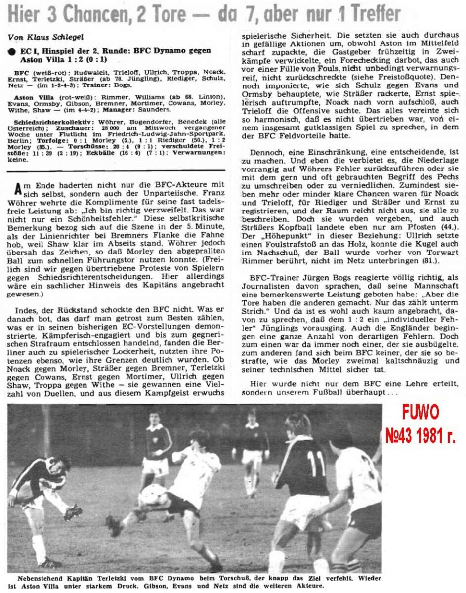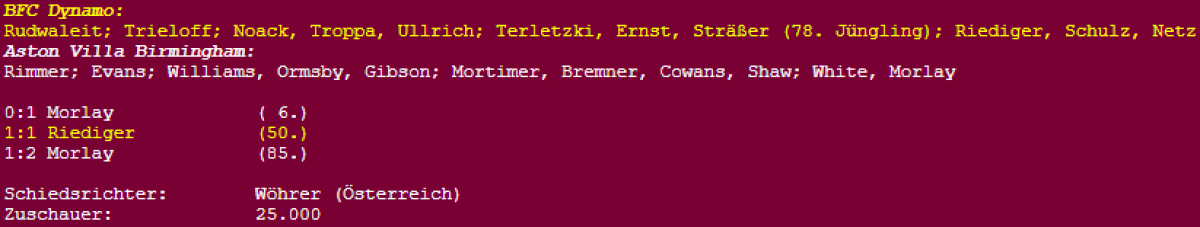 «Динамо» Берлин - «Астон Вилла» Бирмингем - 1:2