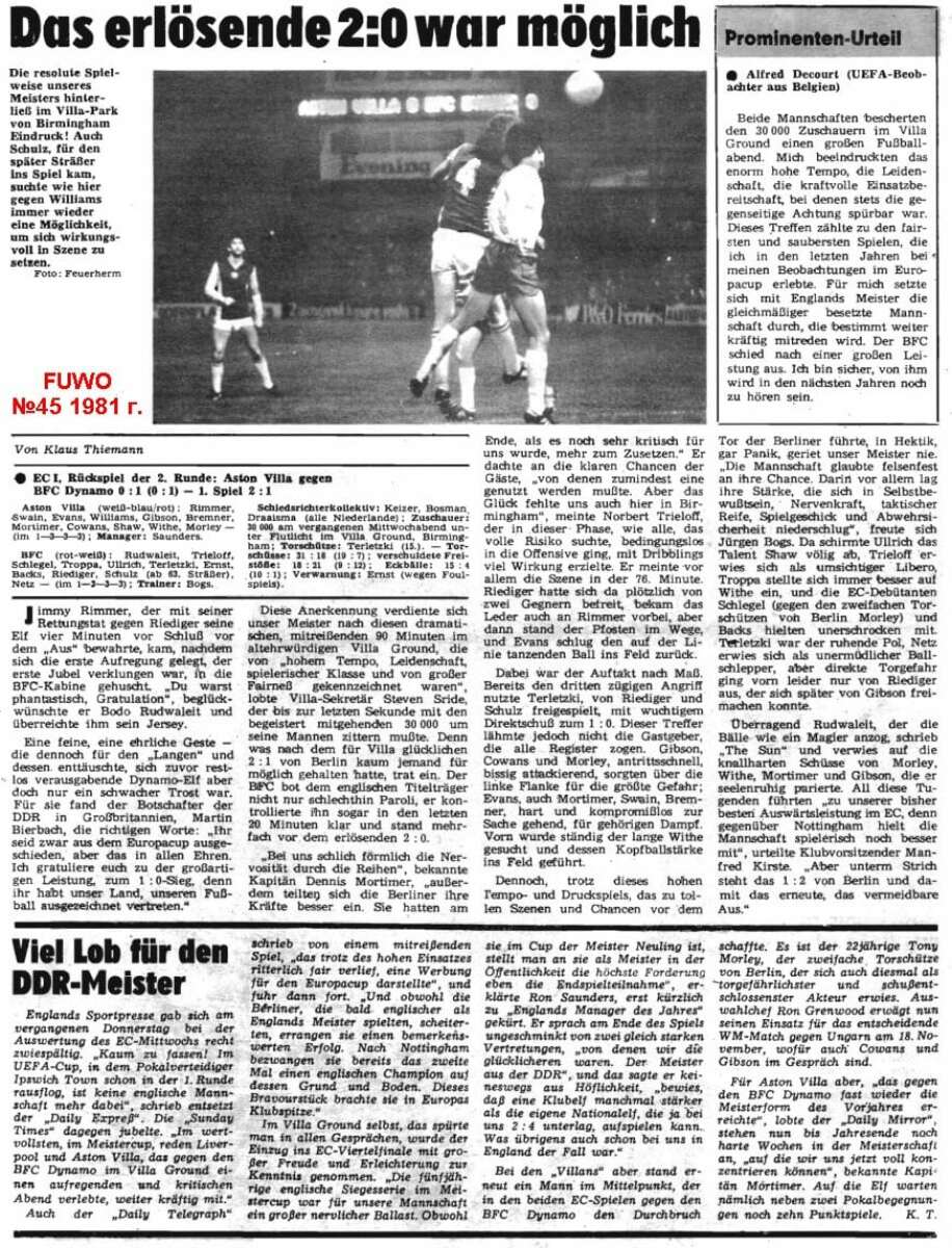 «Астон Вилла» Бирмингем - «Динамо» Берлин - 0:1