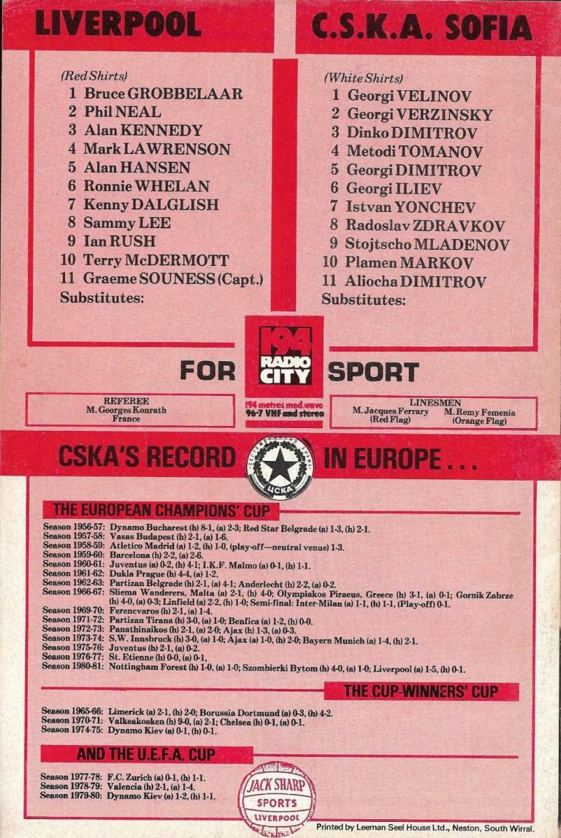 «Ливерпуль» Ливерпуль - «ЦСКА Септемврийско Знаме» София - 1:0
