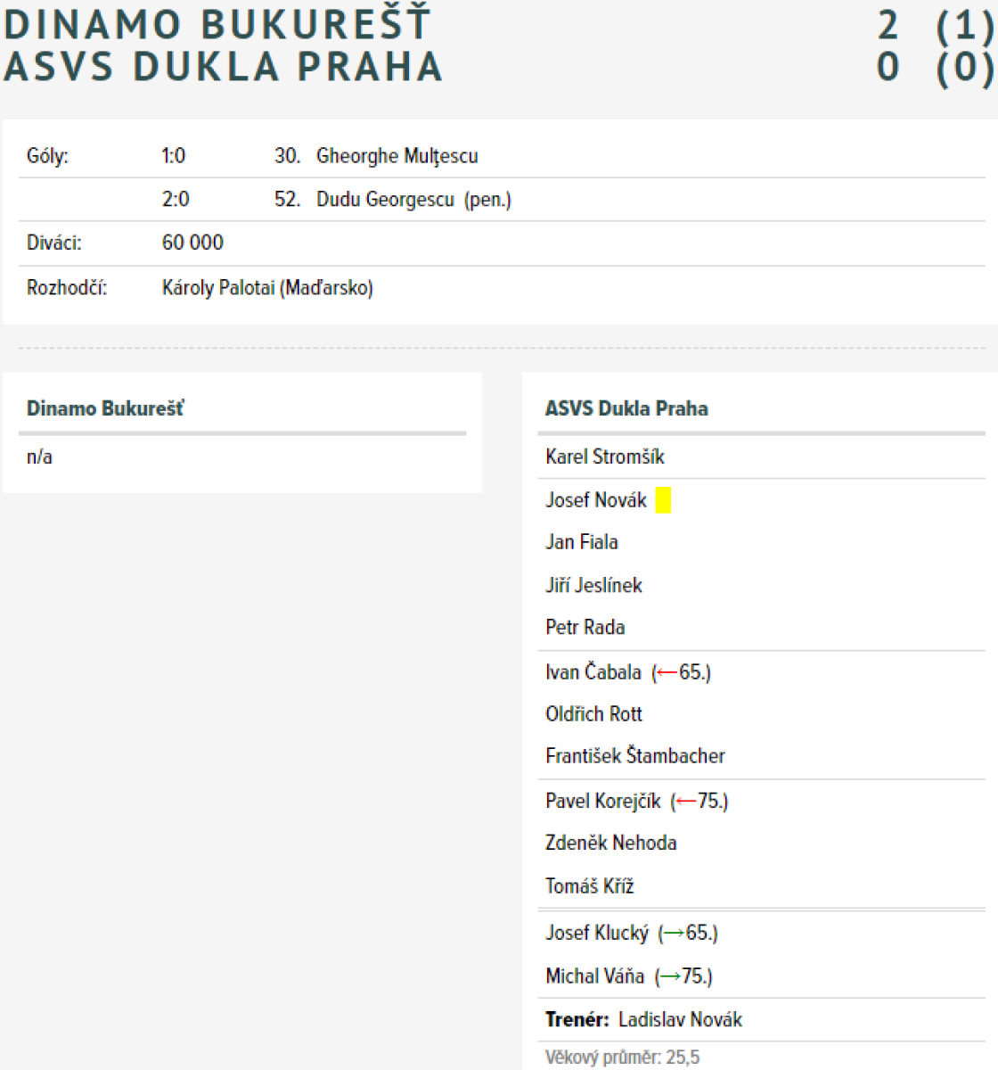 «Динамо» Бухарест - «Дукла» Прага - 2:0