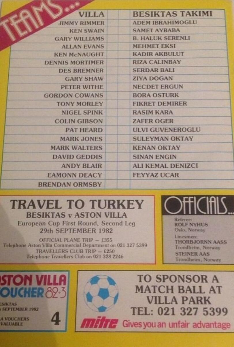 В качестве наказания за беспорядки болельщиков «Астон Виллы» на полуфинале Кубка европейских чемпионов прошлого сезона против «Андерлехта» в Брюсселе им пришлось играть без зрителей. Единственными зрителями были пресса и сотрудники администрации клуба — всего 167 человек.