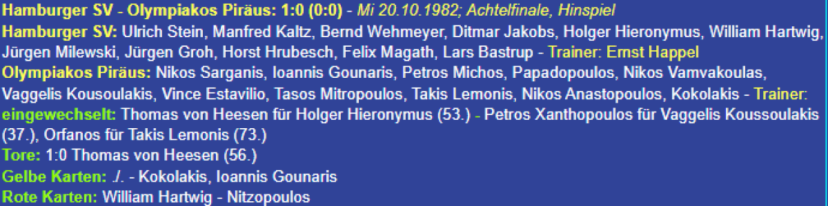 «Гамбургер» Гамбург - «Олимпиакос» Пирей - 1:0