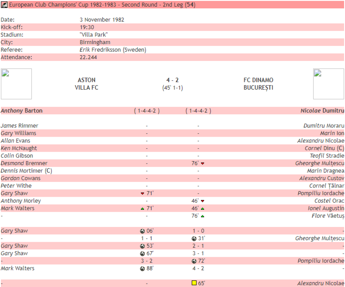 «Астон Вилла» Бирмингем - «Динамо» Бухарест - 4:2
