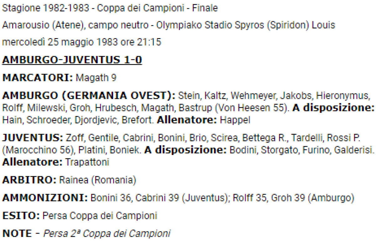 «Гамбургер» Гамбург - «Ювентус» Турин - 1:0