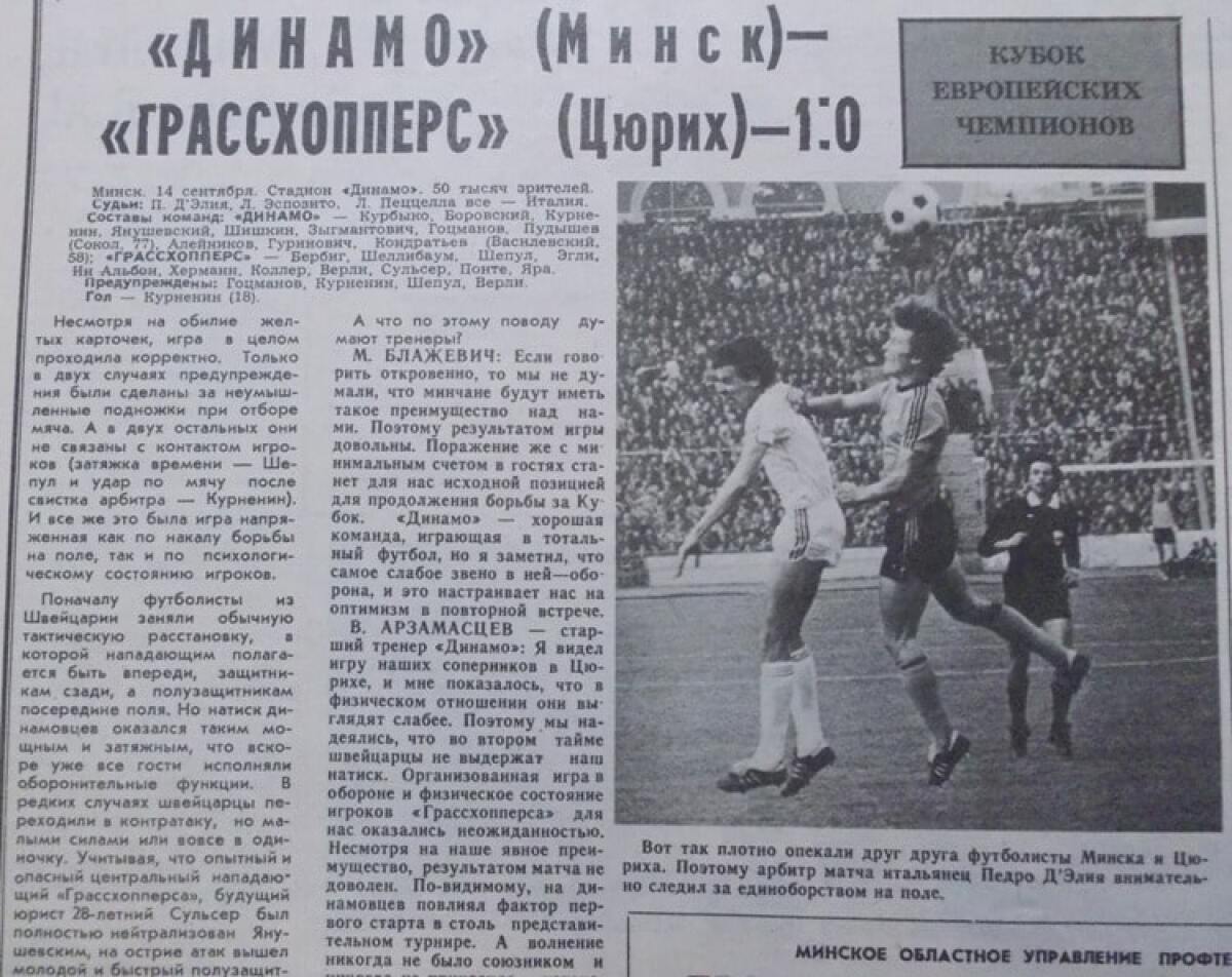 «Динамо» Минск - «Грассхоппер» Цюрих - 1:0