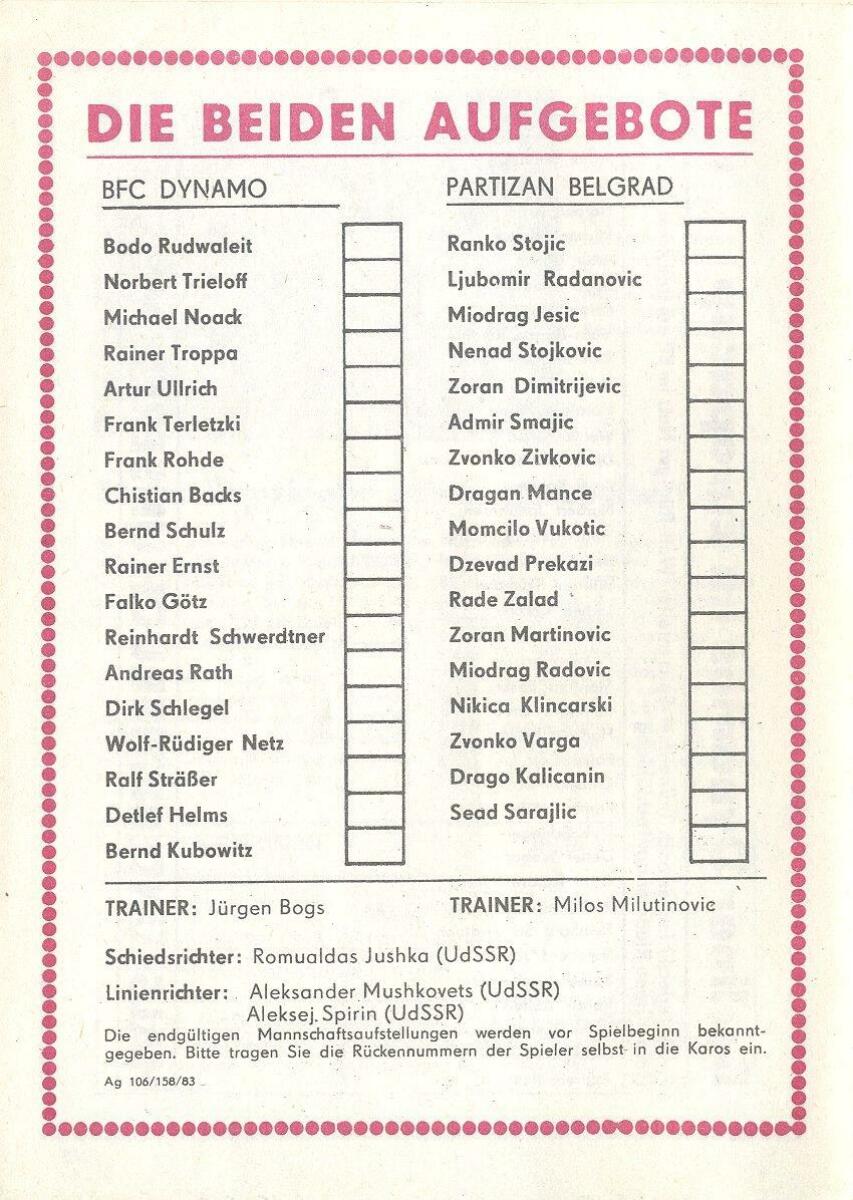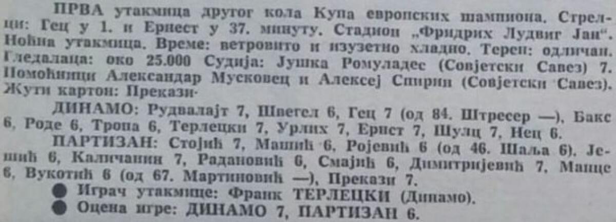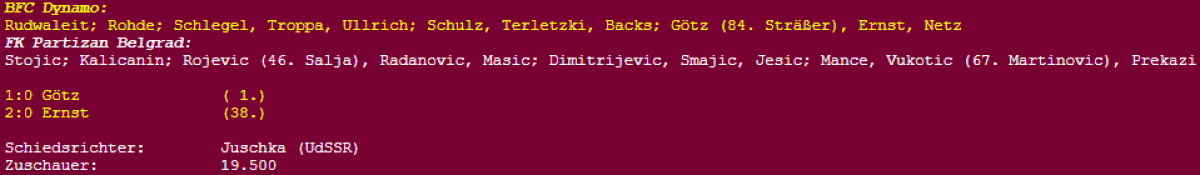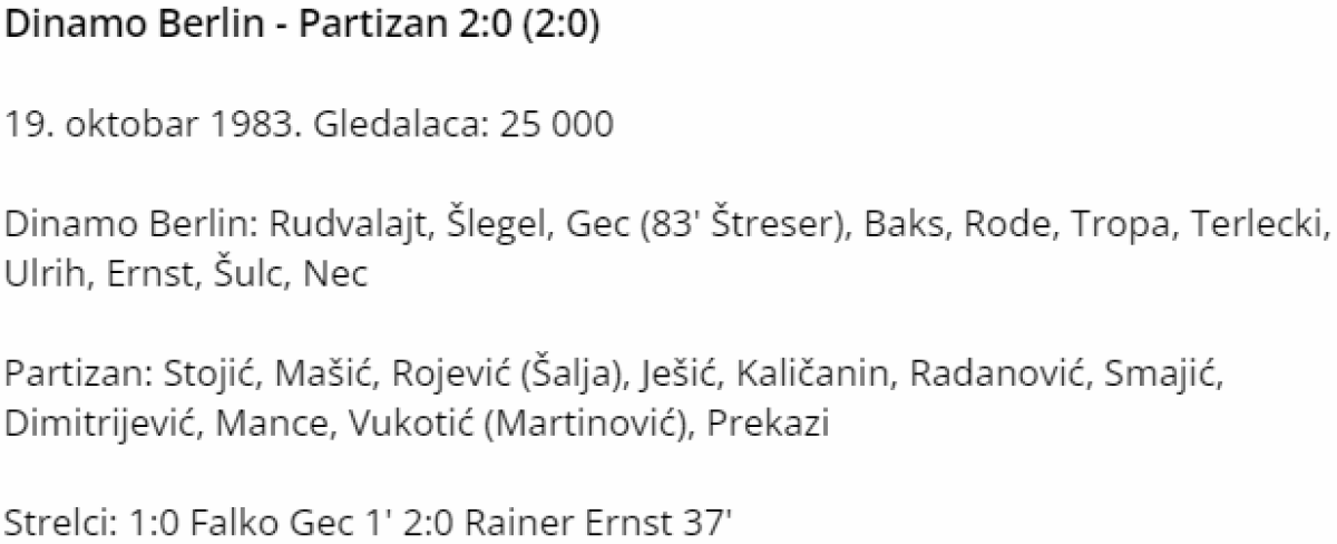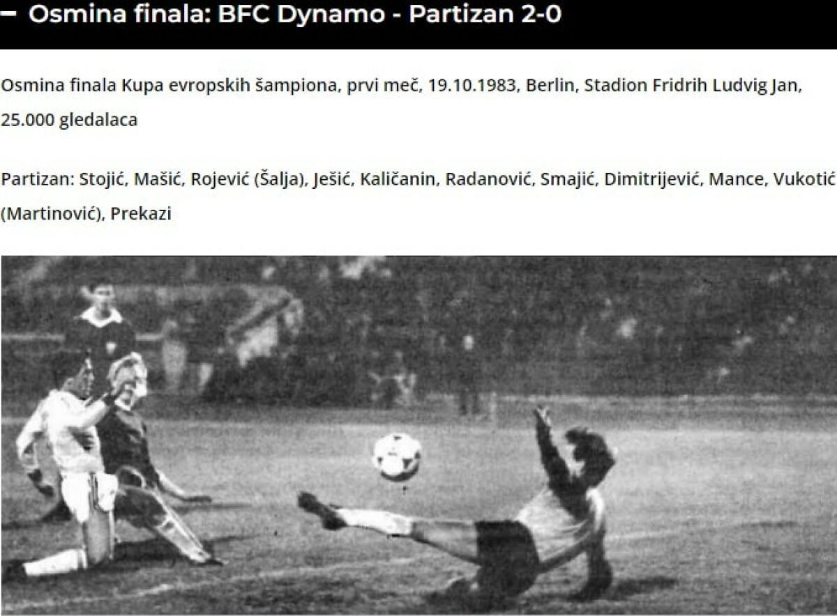 «Динамо» Берлин - «Партизан» Белград - 2:0