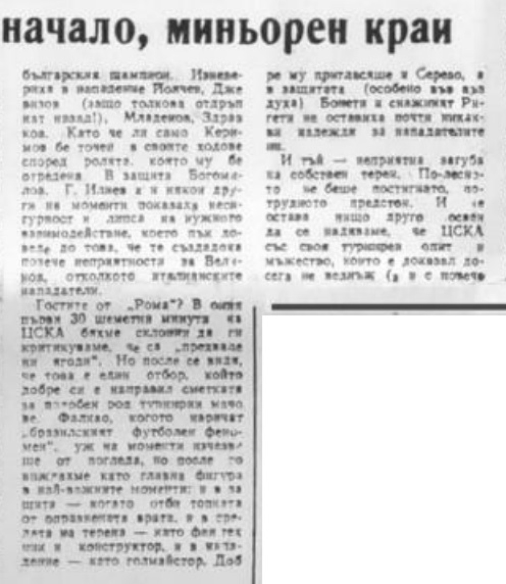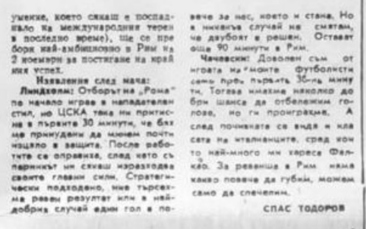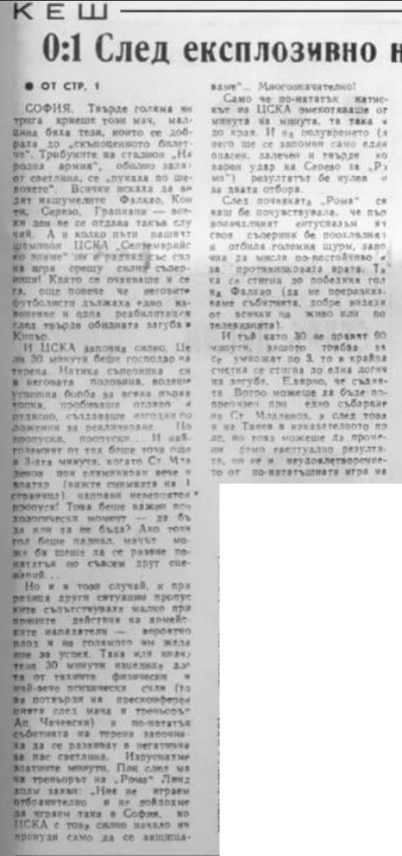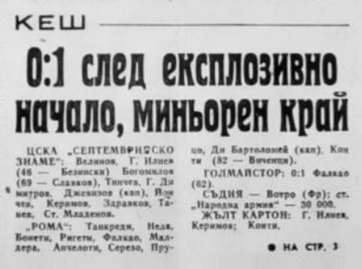 «ЦСКА Септемврийско Знаме» София - «Рома» Рим - 0:1
