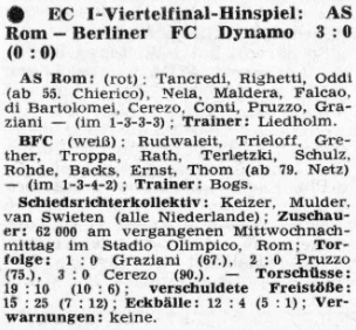 «Рома» Рим - «Динамо» Берлин - 3:0