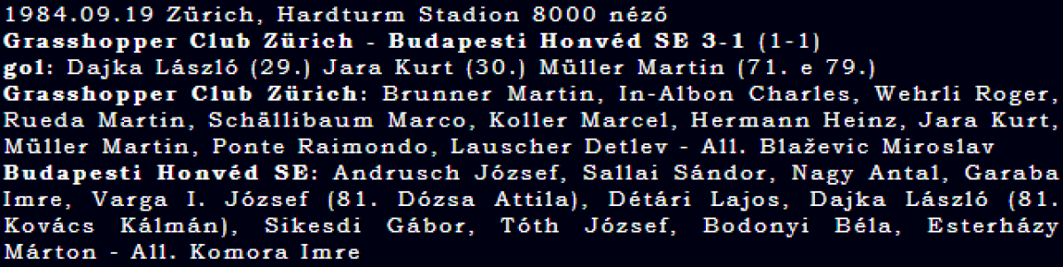 «Грассхоппер» Цюрих - «Гонвед» Будапешт - 3:1