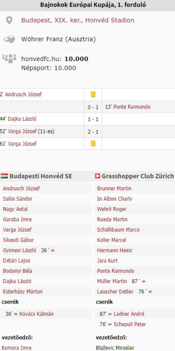 «Гонвед» Будапешт - «Грассхоппер» Цюрих - 2:1