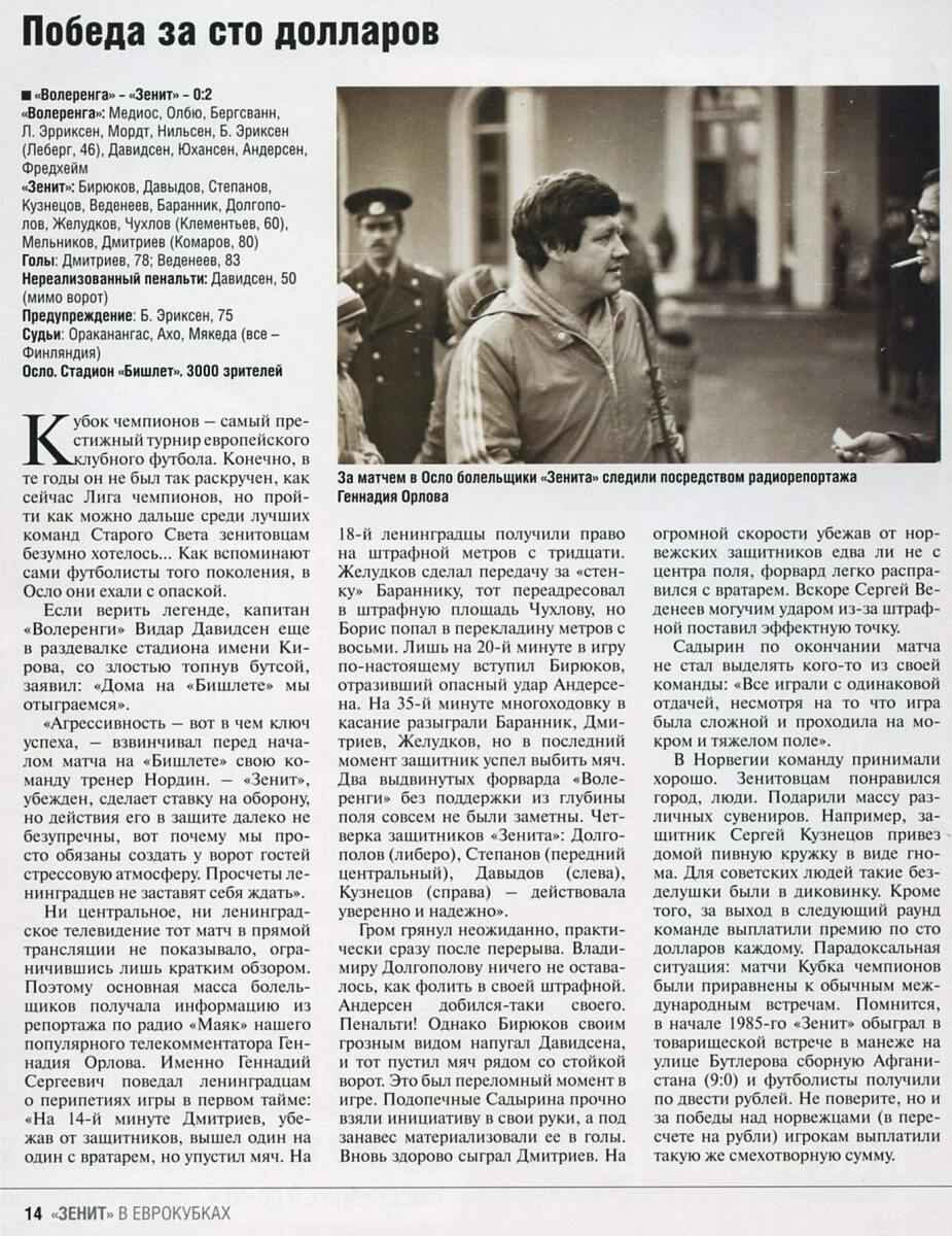 «Волеренгенс» Осло - «Зенит» Ленинград - 0:2