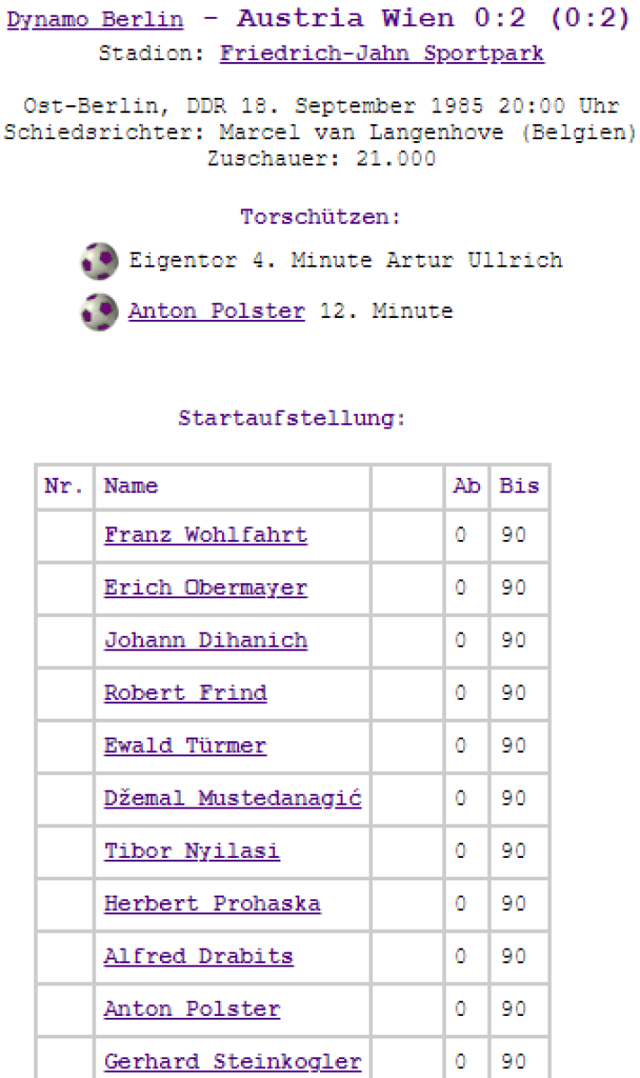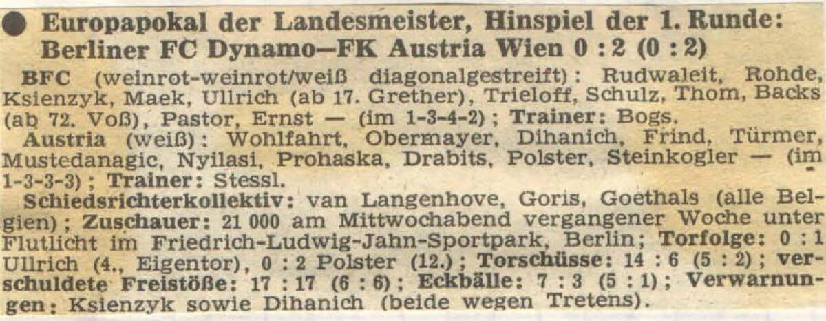 «Динамо» Берлин - «Аустрия» Вена - 0:2