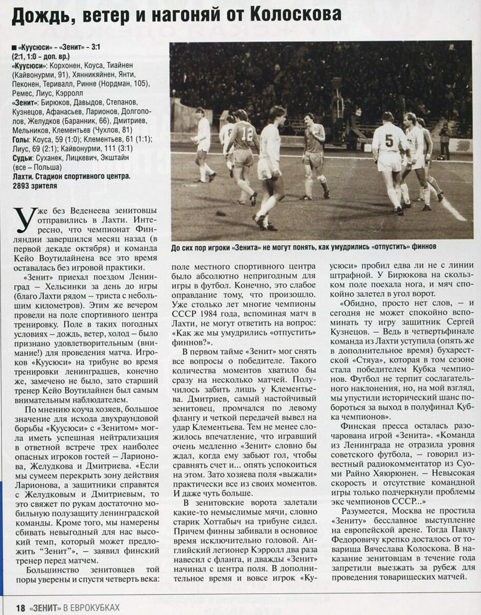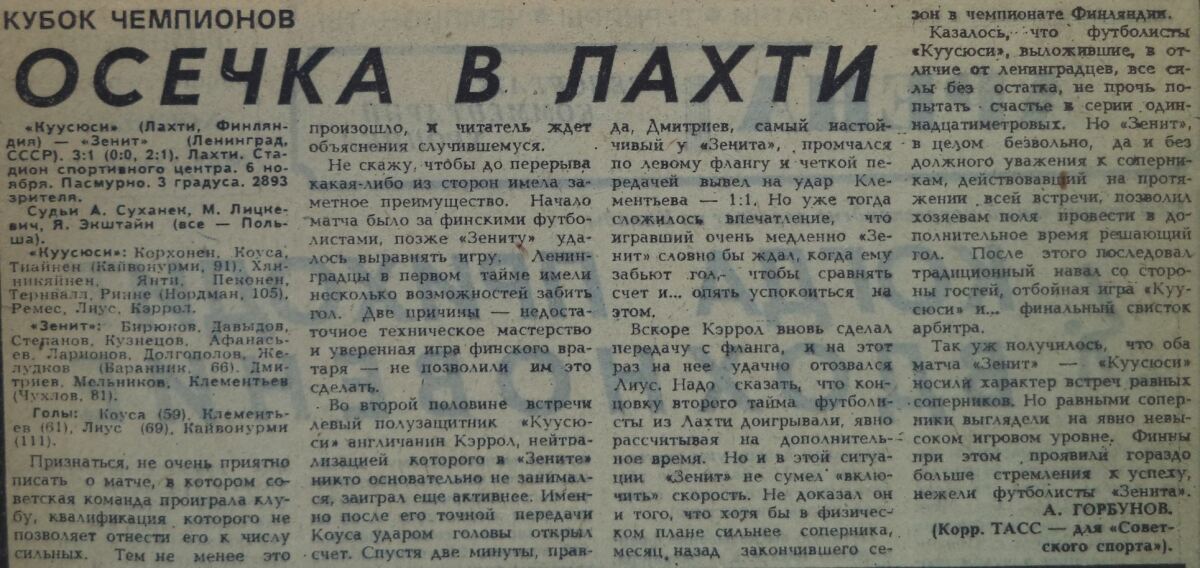 «Куусюси» Лахти - «Зенит» Ленинград - 3:1