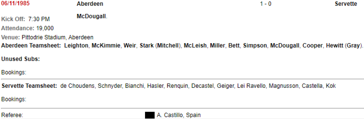 «Абердин» Абердин - «Серветт» Женева - 1:0