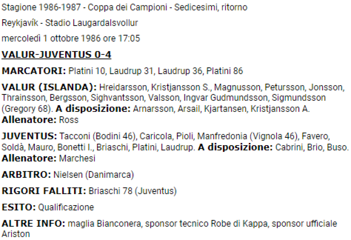 «Валюр» Рейкьявик - «Ювентус» Турин - 0:4