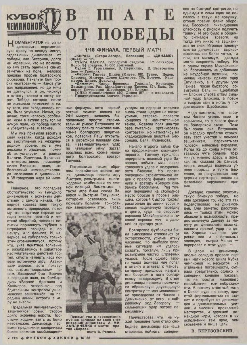 «Берое» Стара-Загора - «Динамо» Киев - 1:1