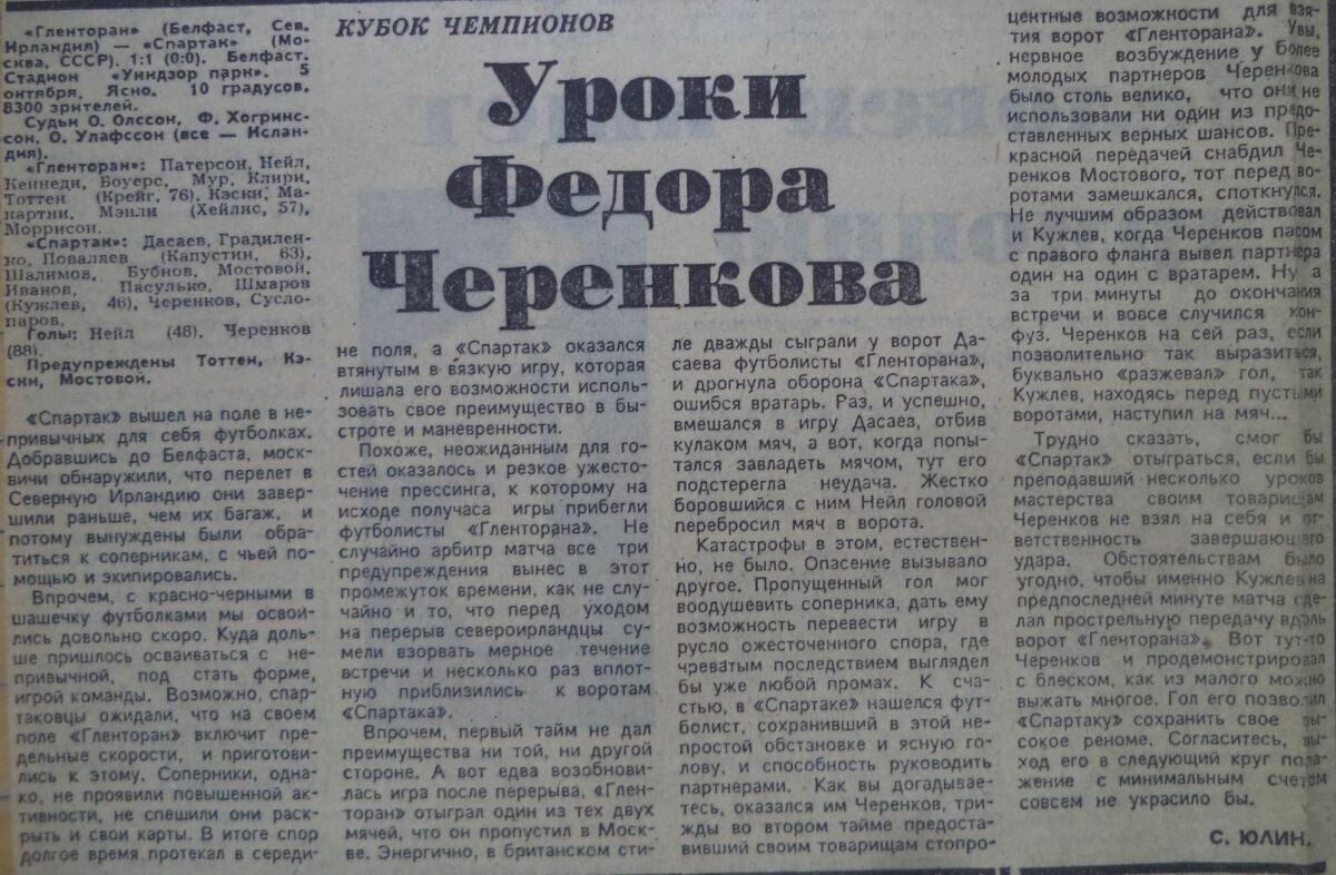 «Гленторан» Белфаст - «Спартак» Москва - 1:1