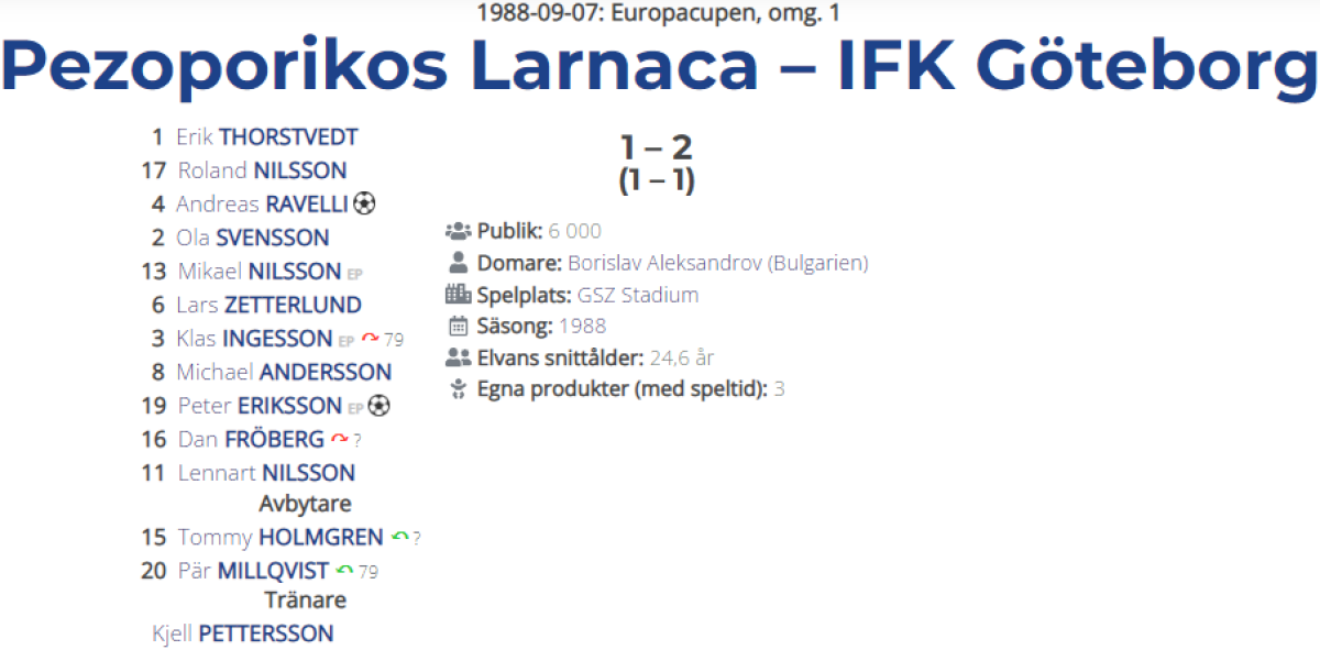 «Пезопорикос» Ларнака - «Гётеборг» Гётеборг - 1:2