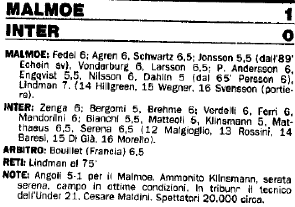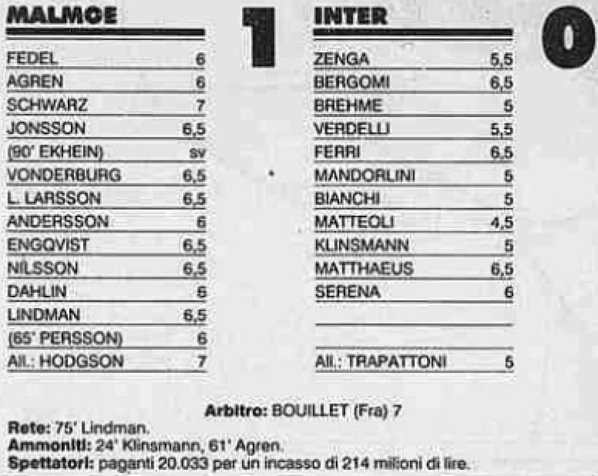 «Мальмё» Мальмё - «Интернационале» Милан - 1:0