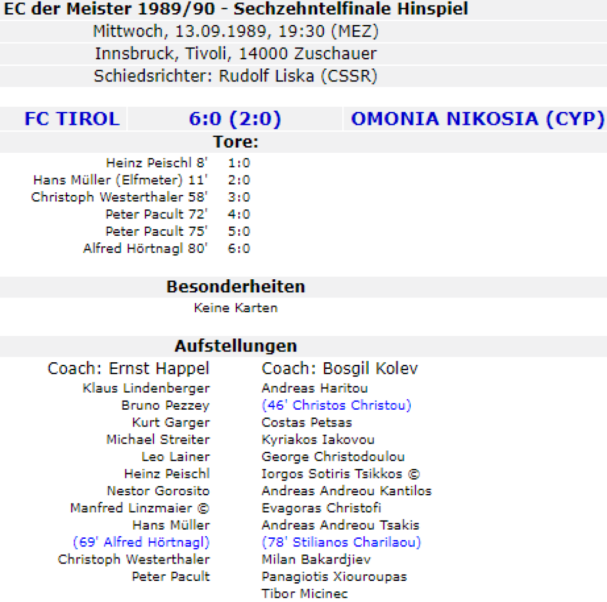«Сваровски-Тироль» Инсбрук - «Омония» Никосия - 6:0