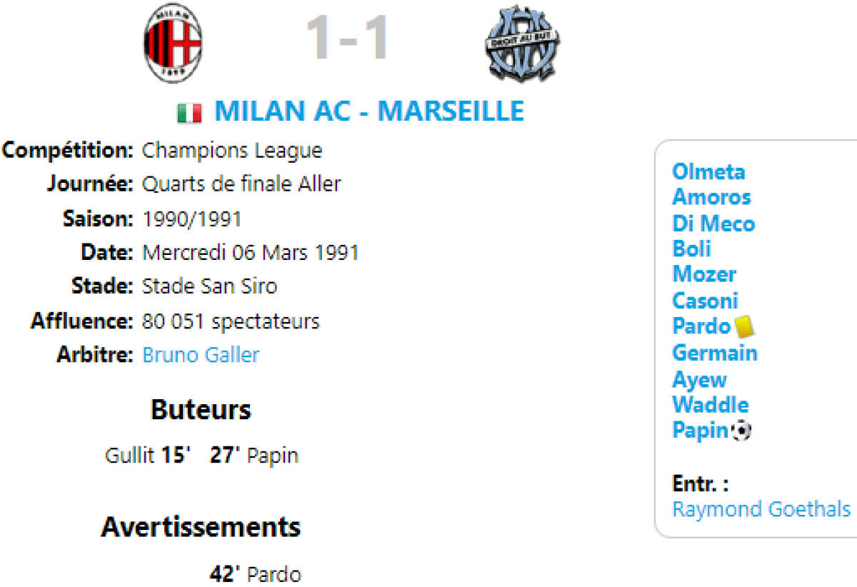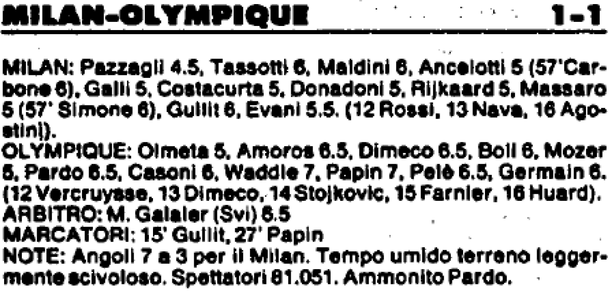 «Милан» Милан - «Олимпик» Марсель - 1:1
