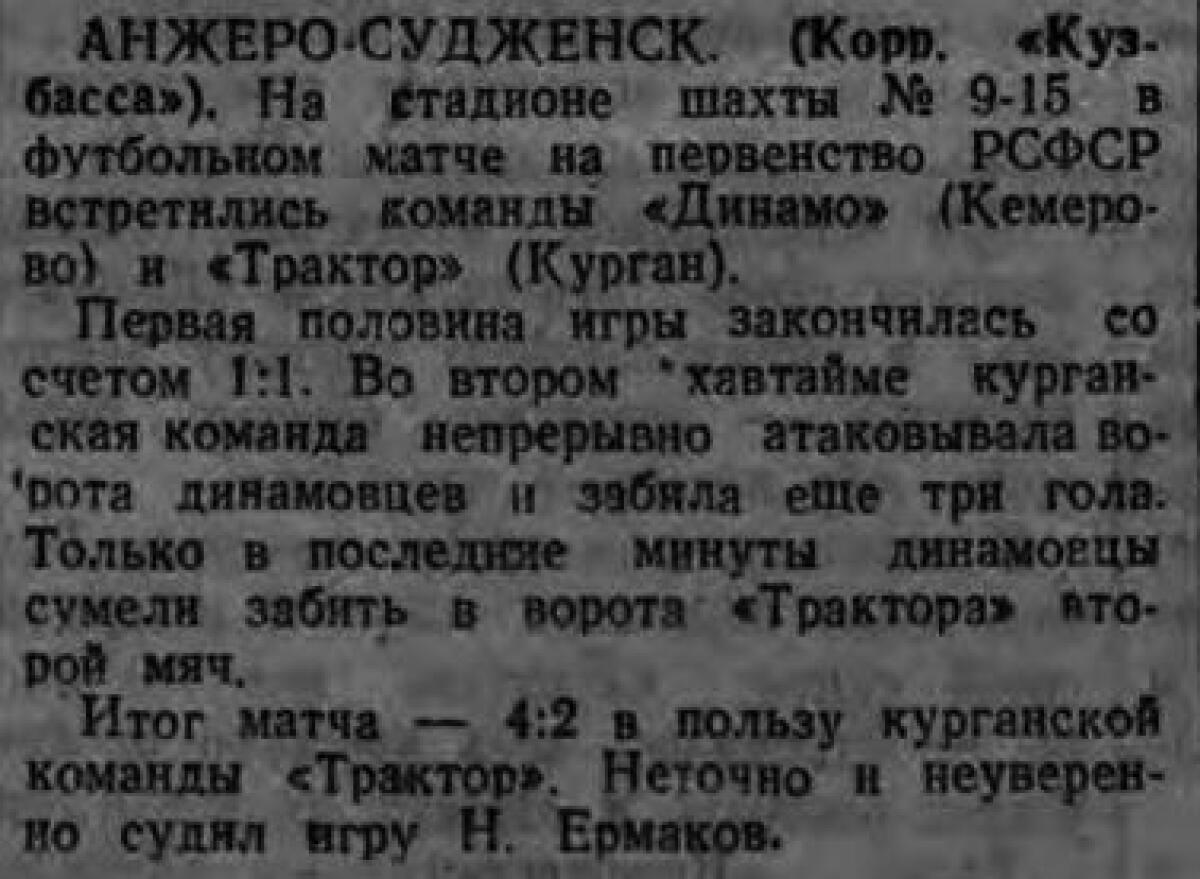 «Динамо» Кемерово - «Трактор» Курган - 2:4