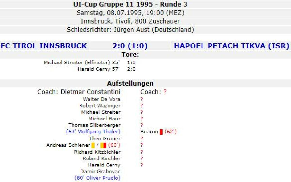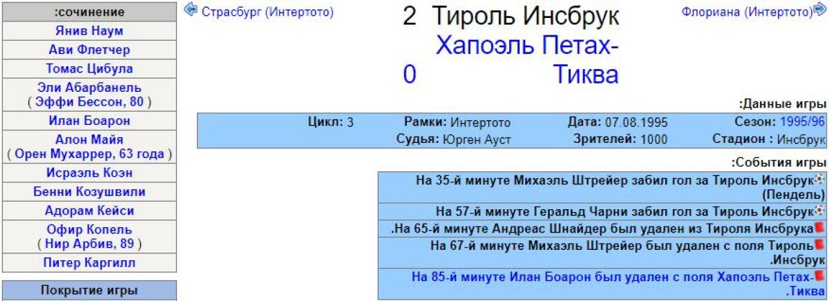 «Инсбрук Тироль» Инсбрук - «Хапоэль» Петах-Тиква - 2:0